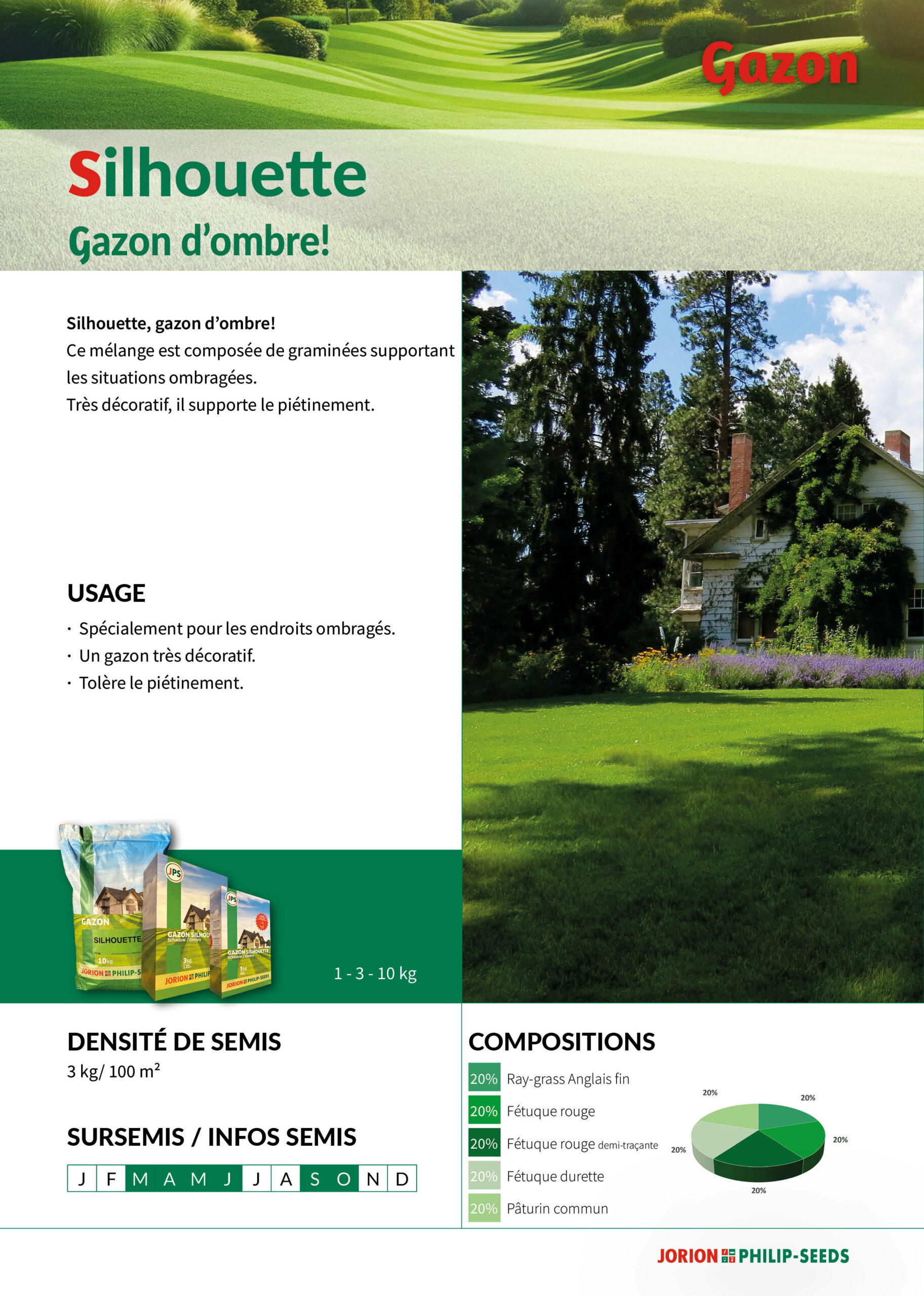 La gamme gazon de Jorion Philip-Seeds comprend des solutions pour différentes applications professionnelles. Les compositions sont adaptées à l'intensité d'utilisation, l'entretien et les conditions de terrain.